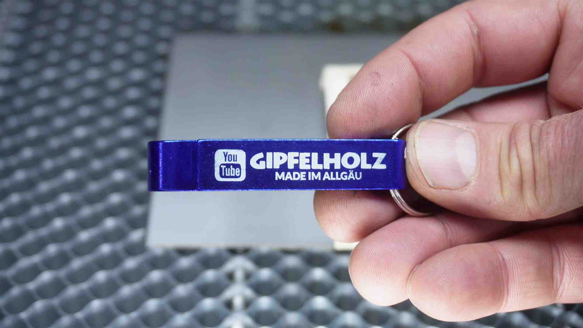 – Flaschenöffenr Alu eloxiert – Speed 300 mm/sek – Leistung 35% –Linienintervall 0,0300