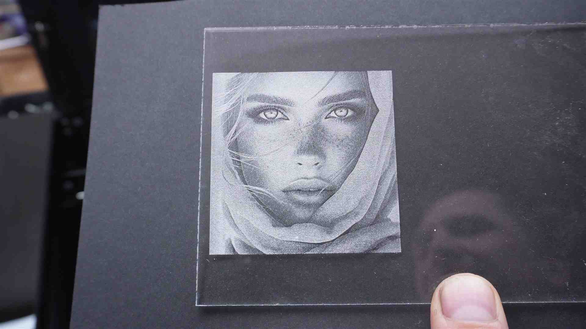 – Foto auf Acryl – 1 Durchgang – Speed 250 mm/sek – Leistung 20%