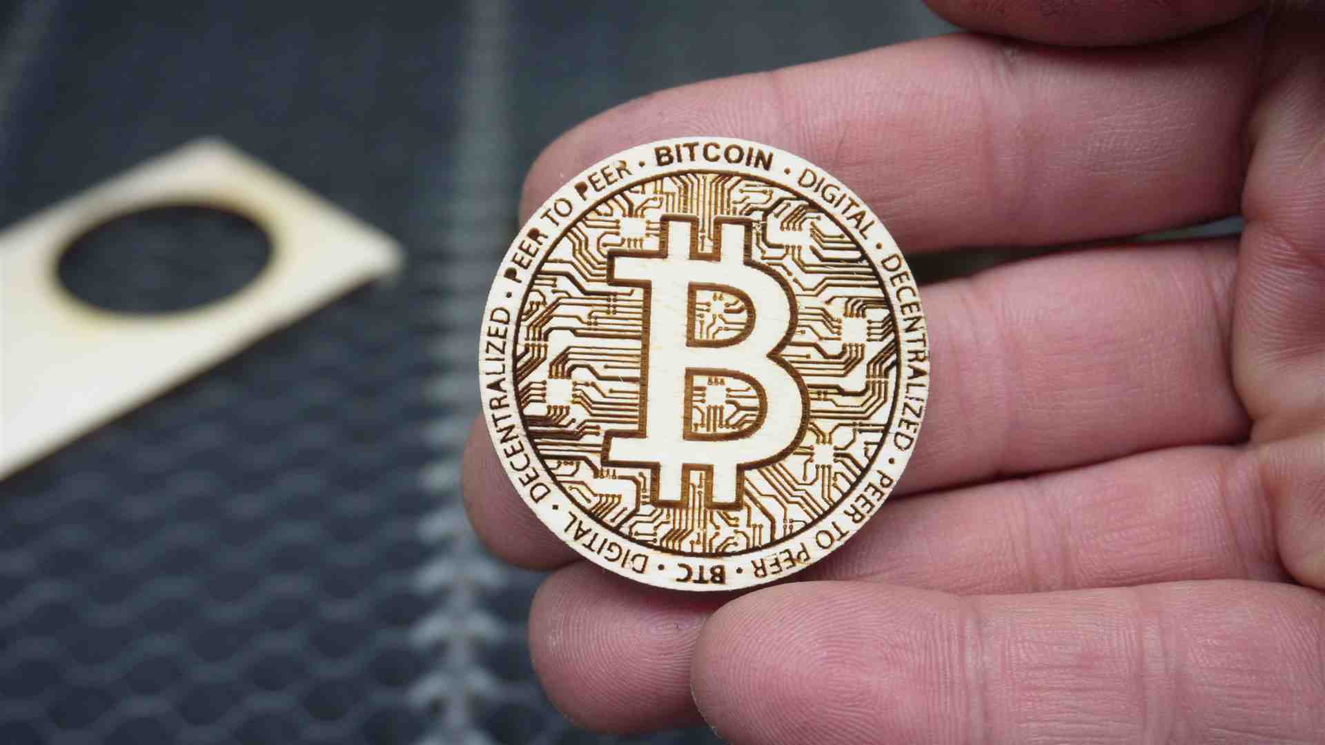 – Holz Gravur Bitcoin – Speed 450 mm/sek – Leistung 50% –Linienintervall 0,0799