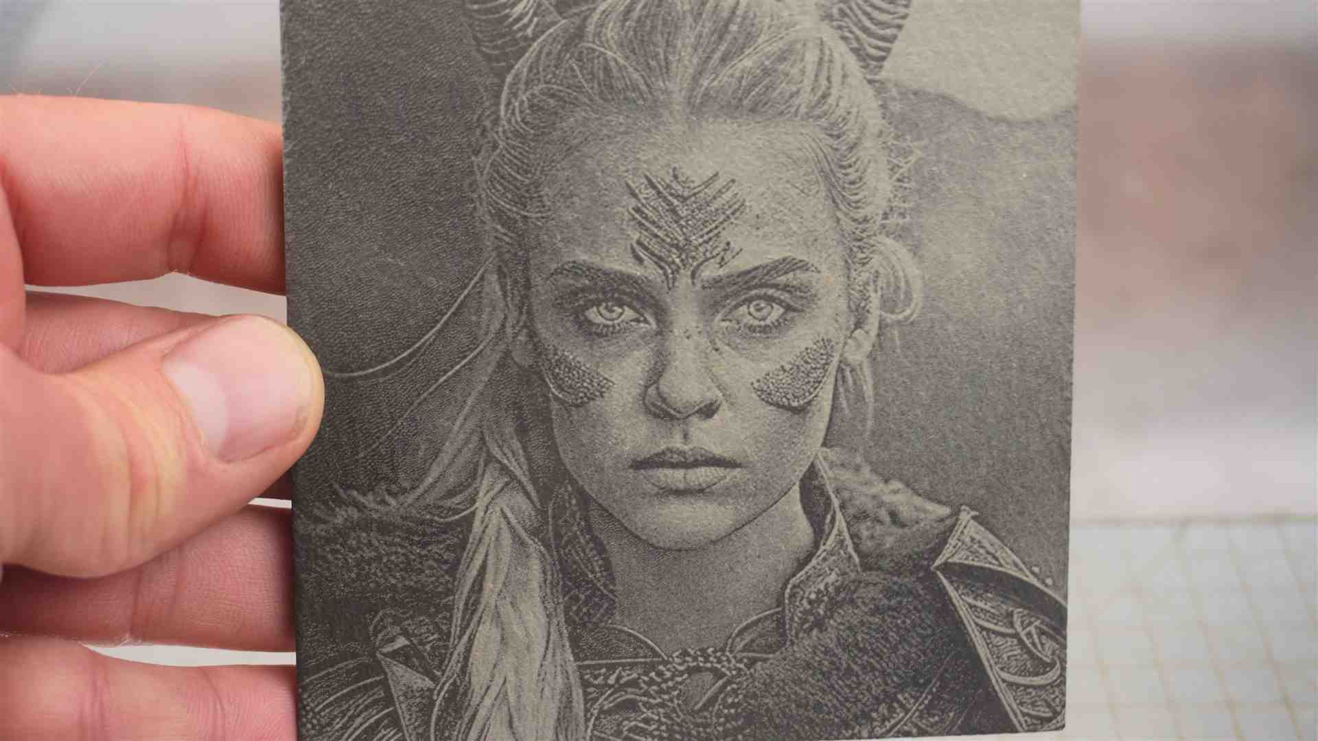 – Stein Gravur flach– 7000 mm/min / 80 % PowerZeilenintervall 0,01 – 30KHz – 1 Durchgang