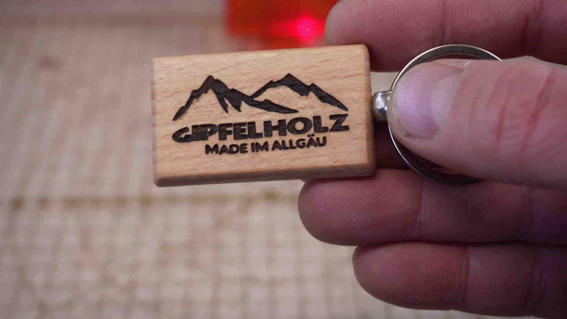 – Holz Anhänger Logo Gravur – 5000 mm/min / 60 % Power – Zeilenintervall 0,08