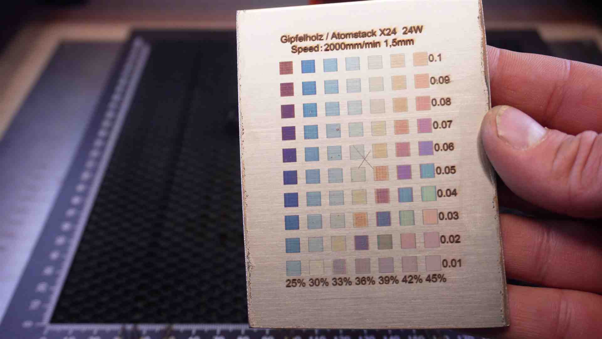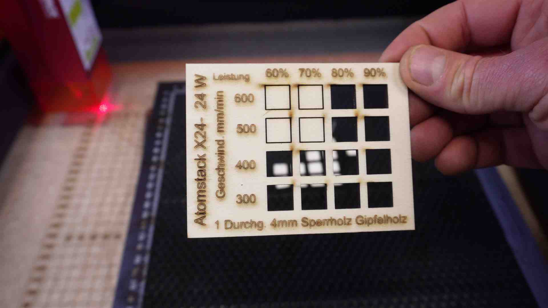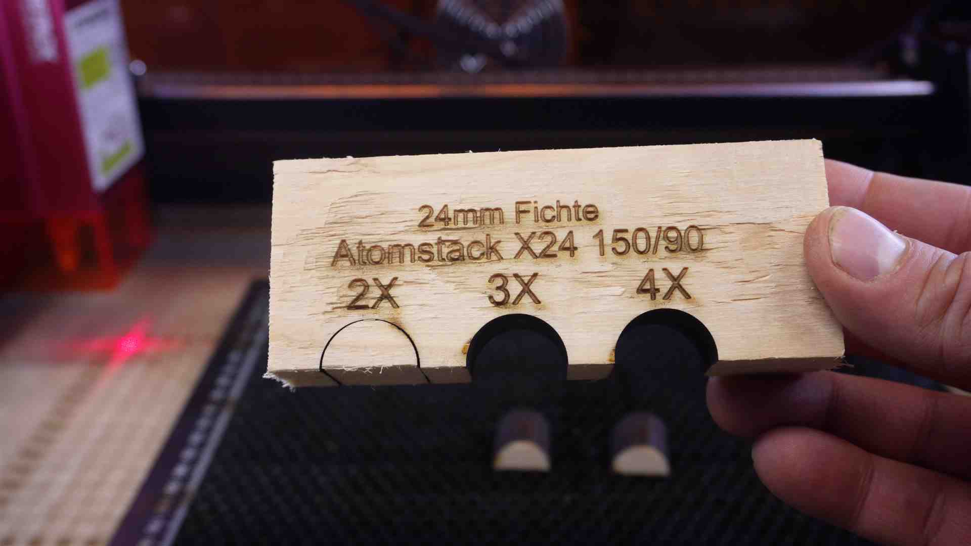 Lasern mit dem Atomstack X24 / A24 Pro. Hier einige Beispiele mit Werten aus dem Video