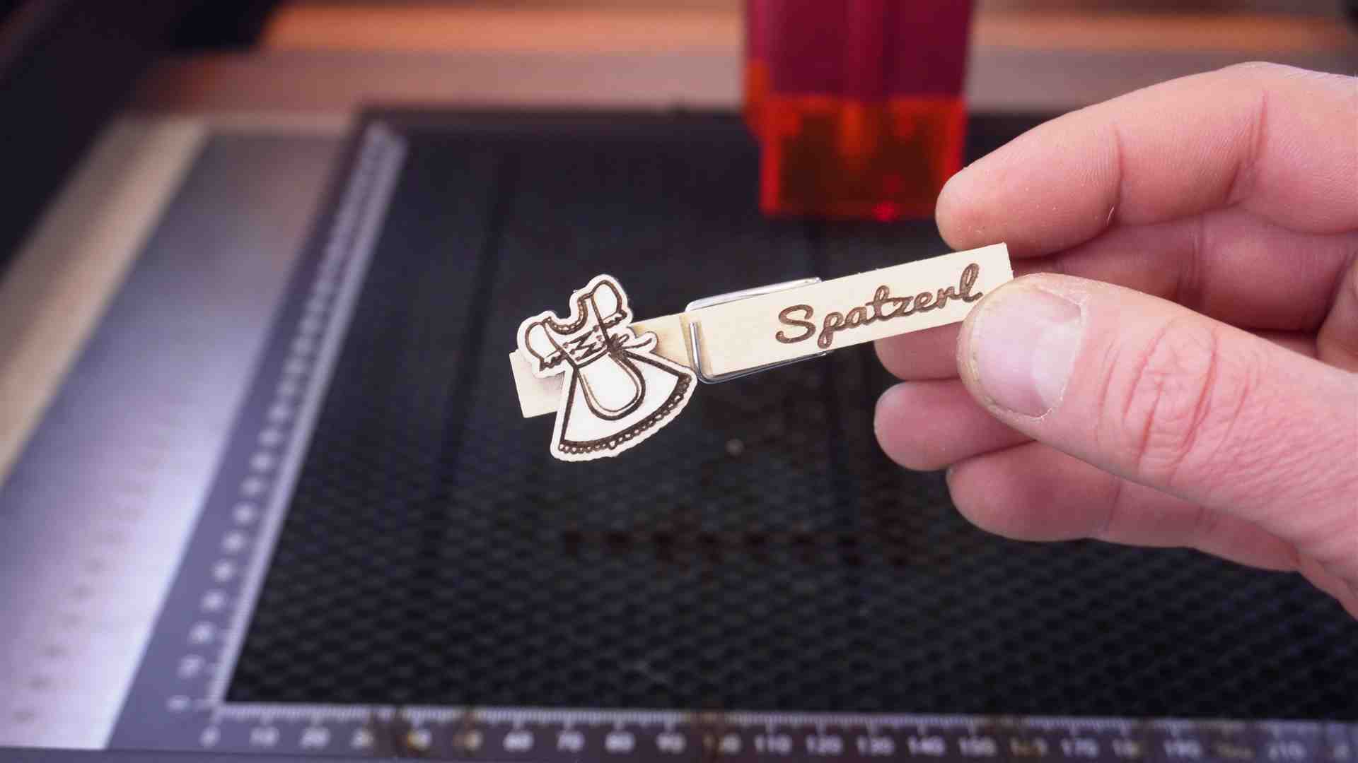– Wäscheklammer Anhänger mit Spruch und Bild – 6000 mm/min / 50 % Power – Zeilenintervall 0,500