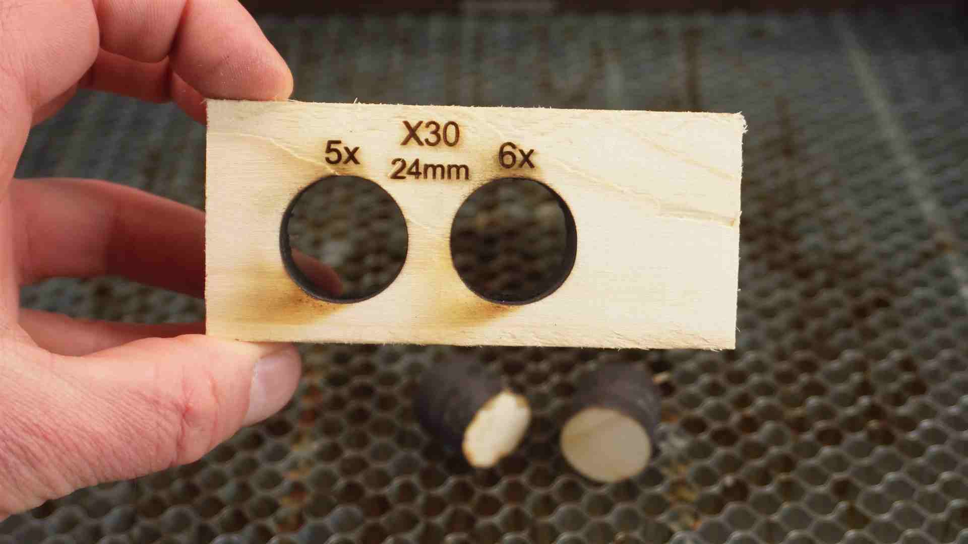 – Fichte 24mm: 200 mm/min / 90 % Power – 5-6 Durchgänge (X20: 200 mm/min / 100 % Power – 6-8 Durchgänge