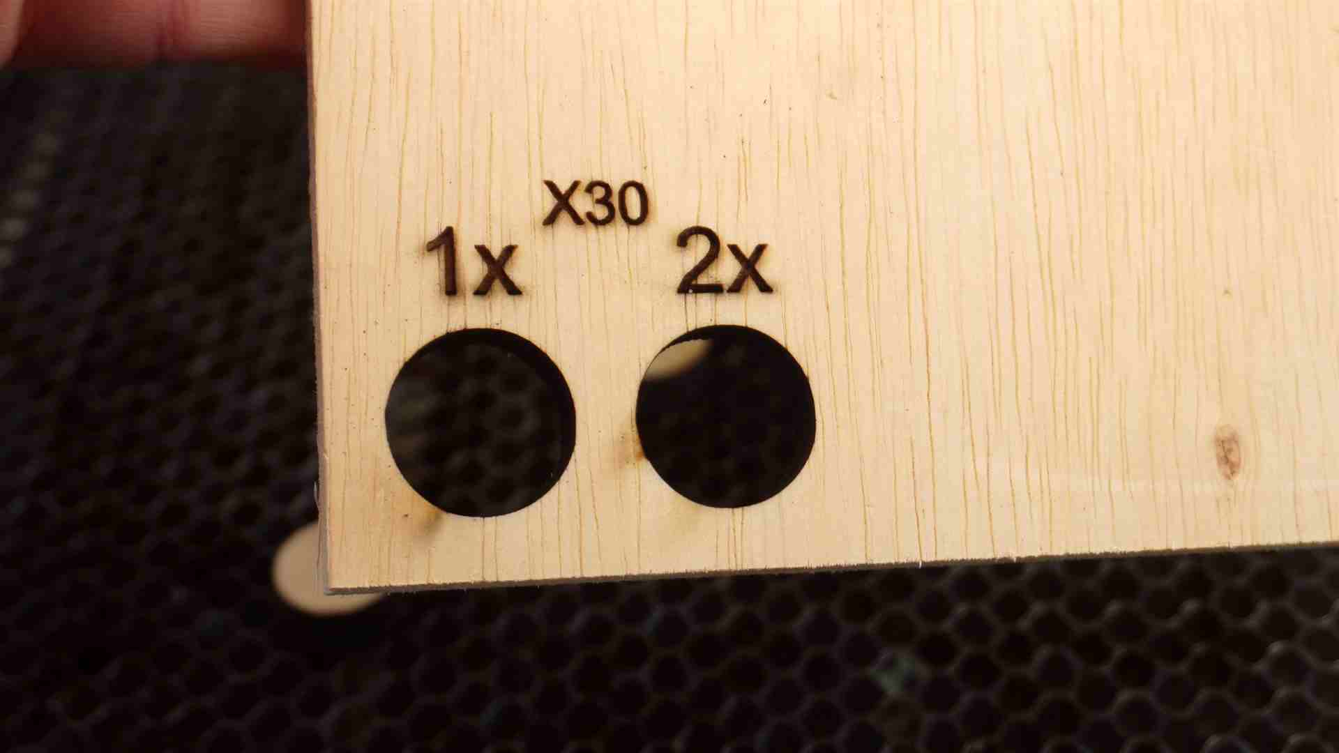 – Pappel Sperrholz 12mm: 200 mm/min / 90% Power – 1 Durchgang oder 300 mm/min / 90% Power – 2 Durchgänge (X20: 250 mm/min / 95 % Power – 3 Durchgänge)