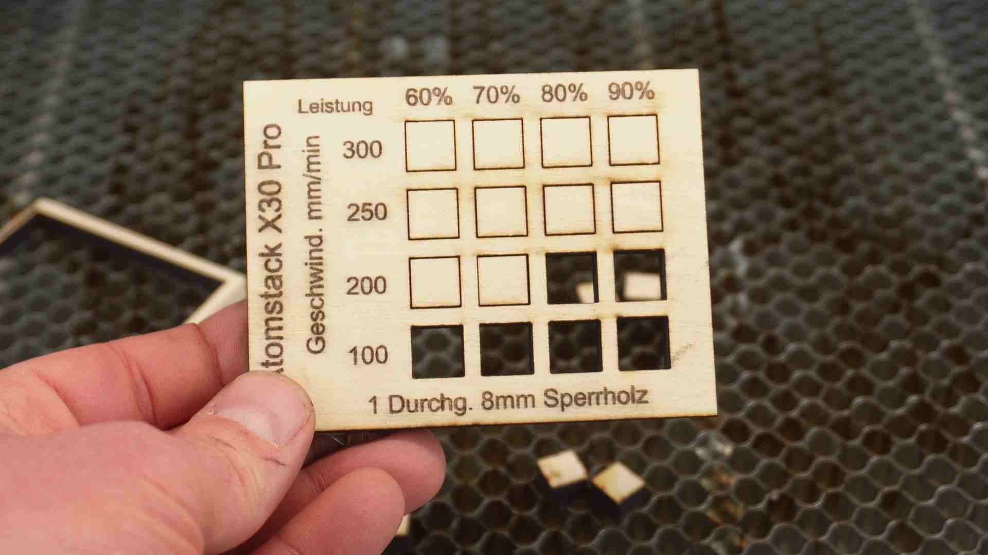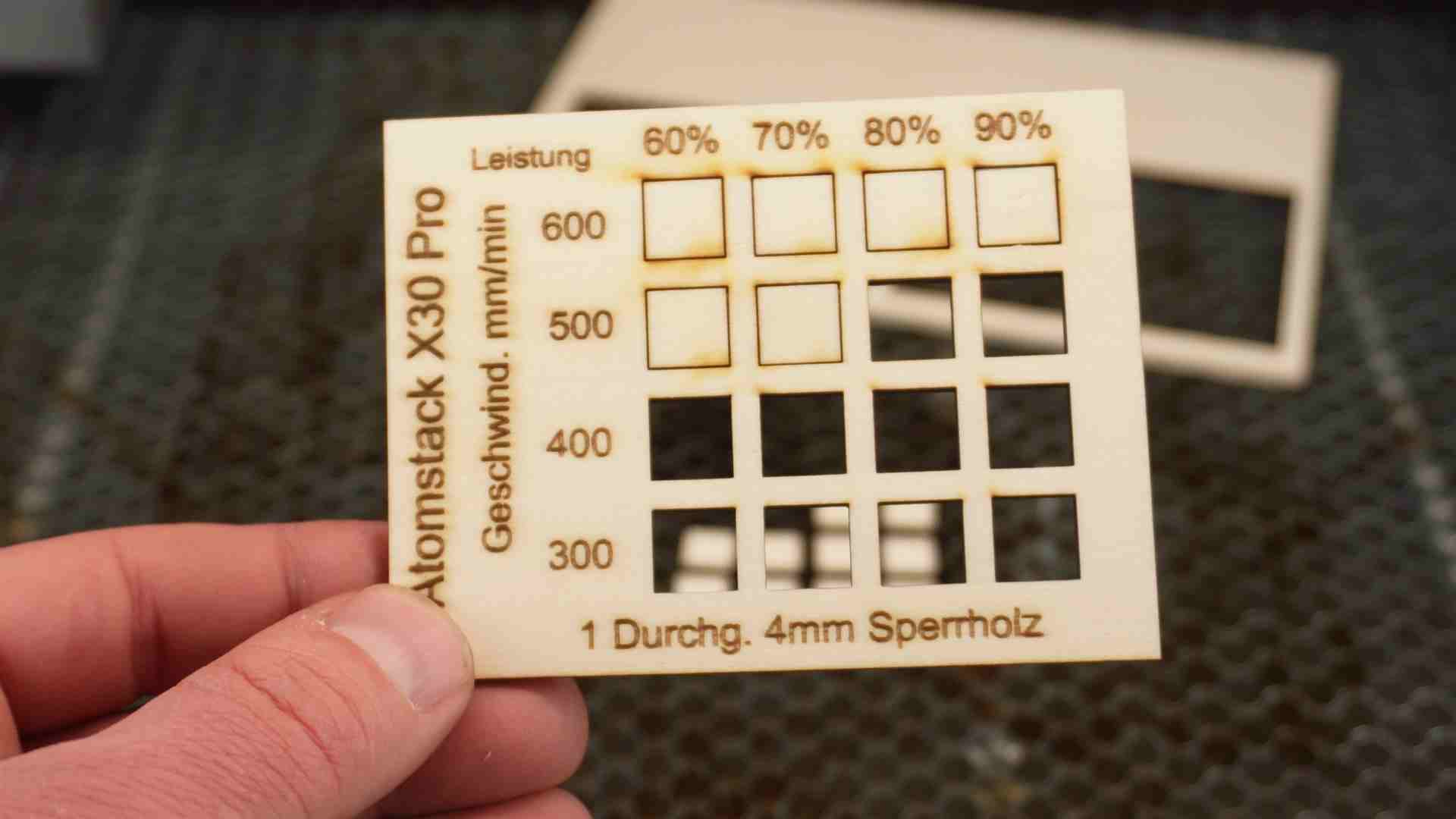 Lasern mit dem Atomstack X30 Pro. Hier einige Beispiele mit Werten aus dem Video
