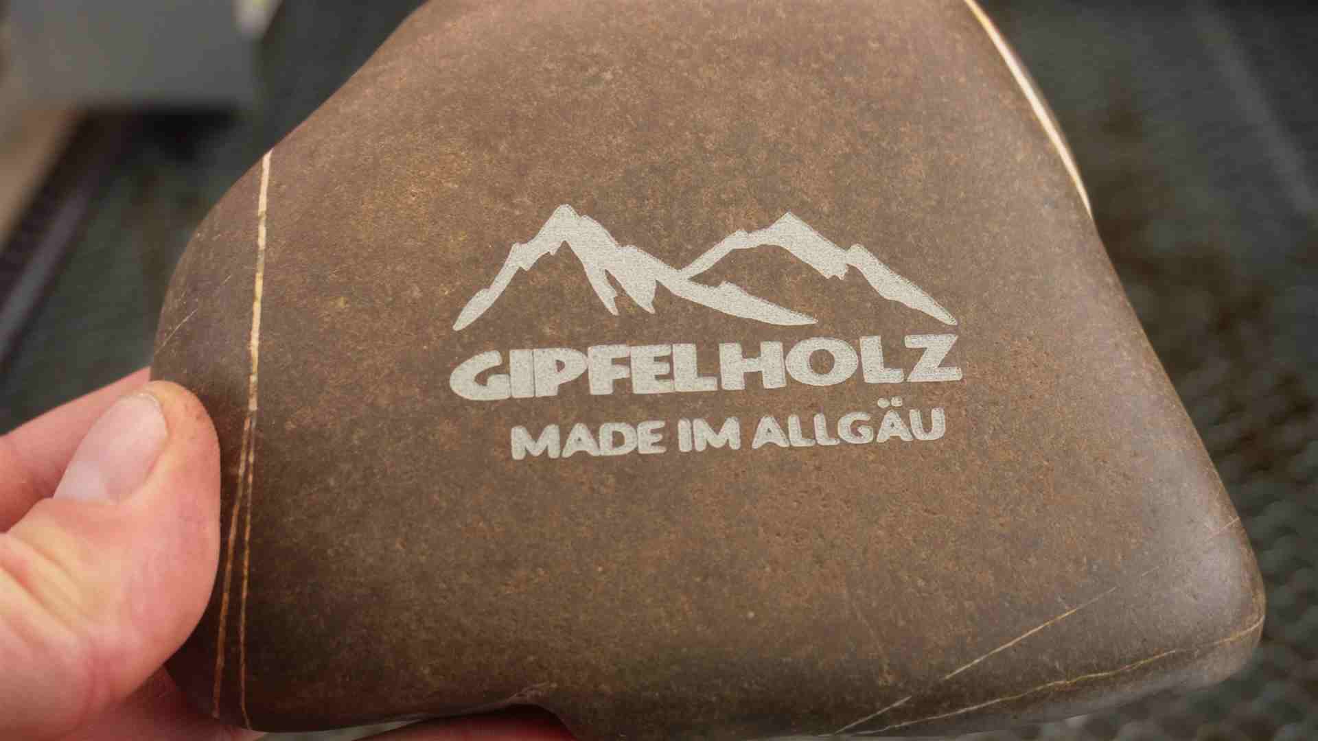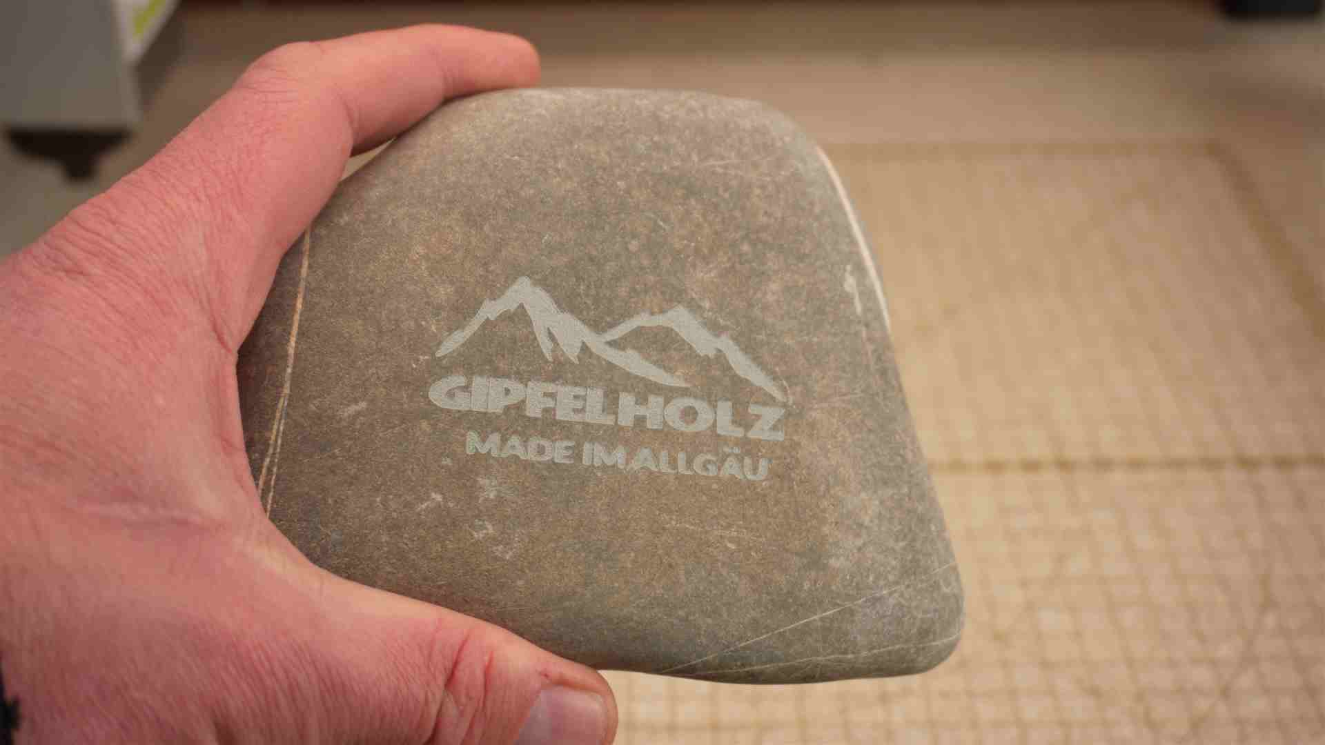 Nachdem Lasern habe ich den Stein noch mit einem matten Lack überzogen. Somit kommt das gelaserte noch besser raus.