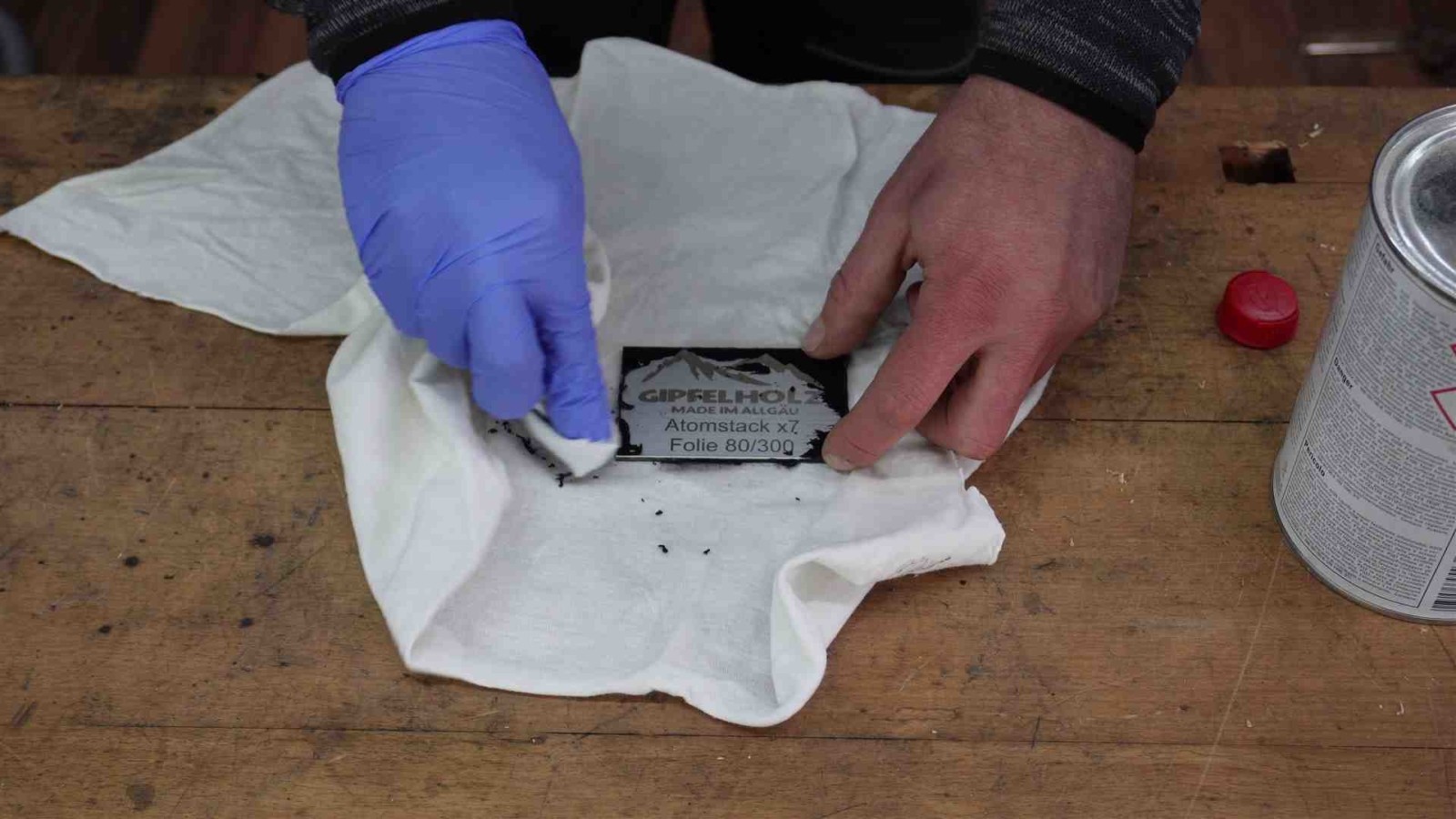 Nach dem Lasern könnt Ihr die Folie ganz leicht mit Aceton abputzen… fertig. Die Schrift lässt sich nicht mehr so einfach entfernen.