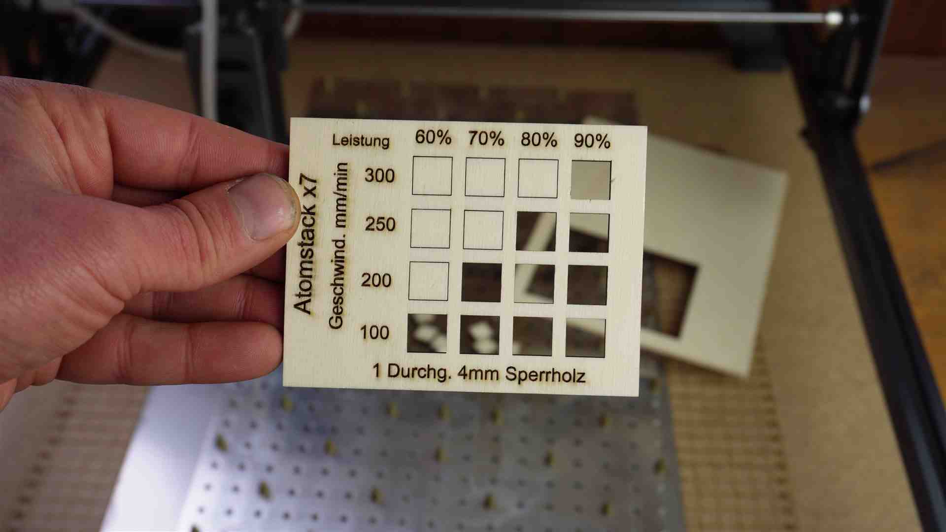 Lasern mit dem Atomstack x7 Pro. Hier einige Beispiele mit Werten aus dem Video