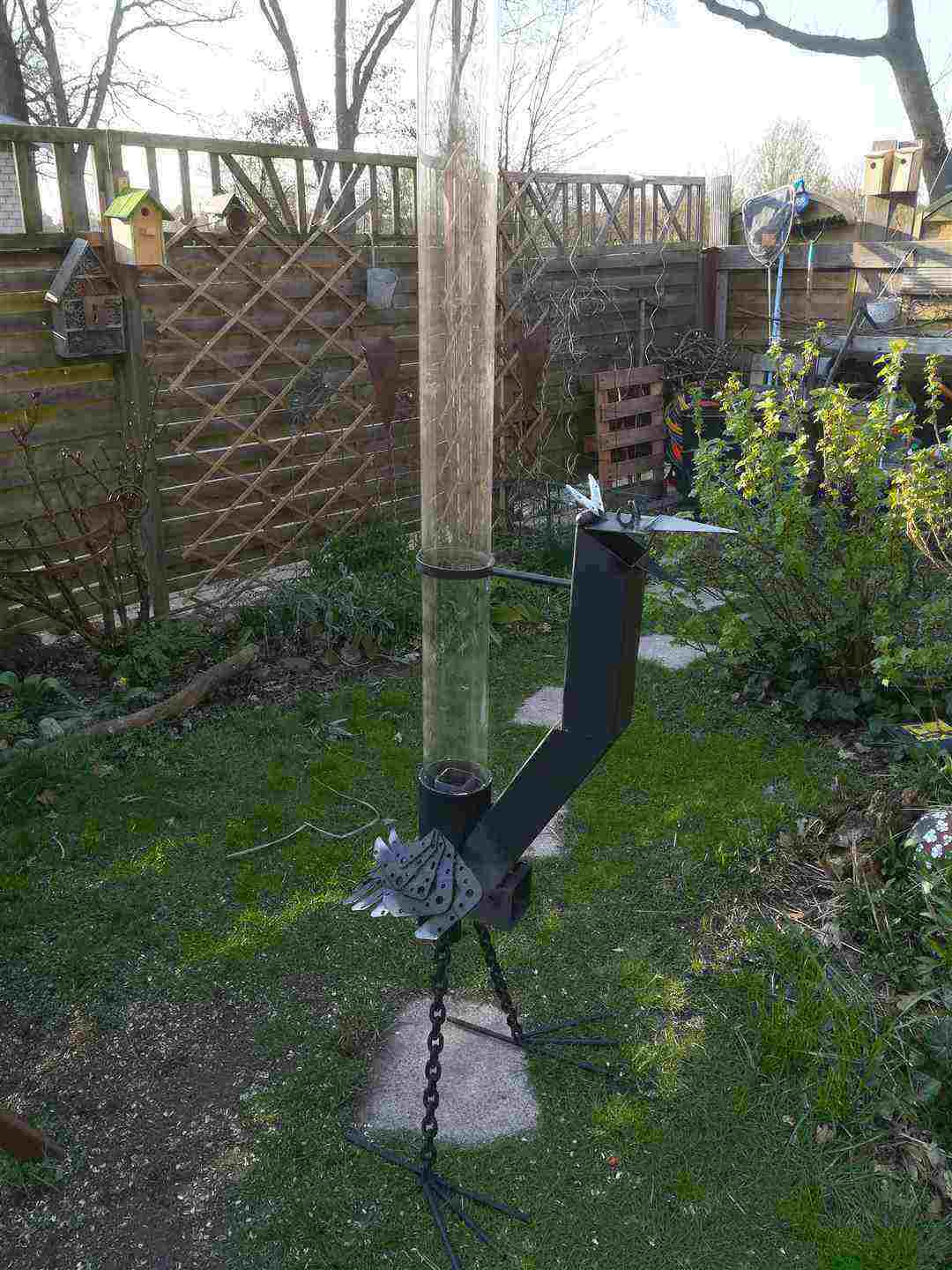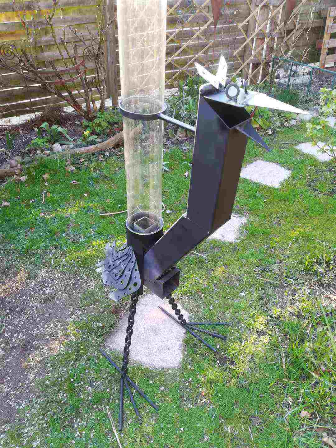 Eine besonders schöne Deko im Garten. Ein Feuerrohr in Form eines Vogels. Der sogenannte Feuervogel.