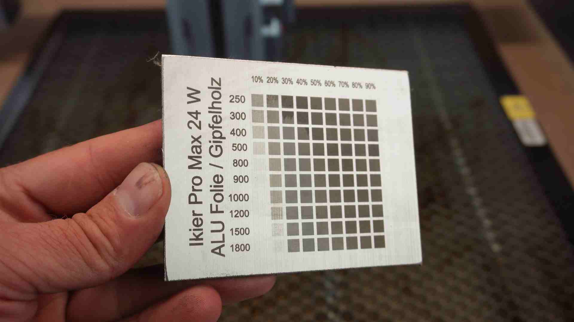 Lasern mit dem Ikier K1 Pro Max 48Watt . Hier einige Beispiele mit Werten aus dem Video