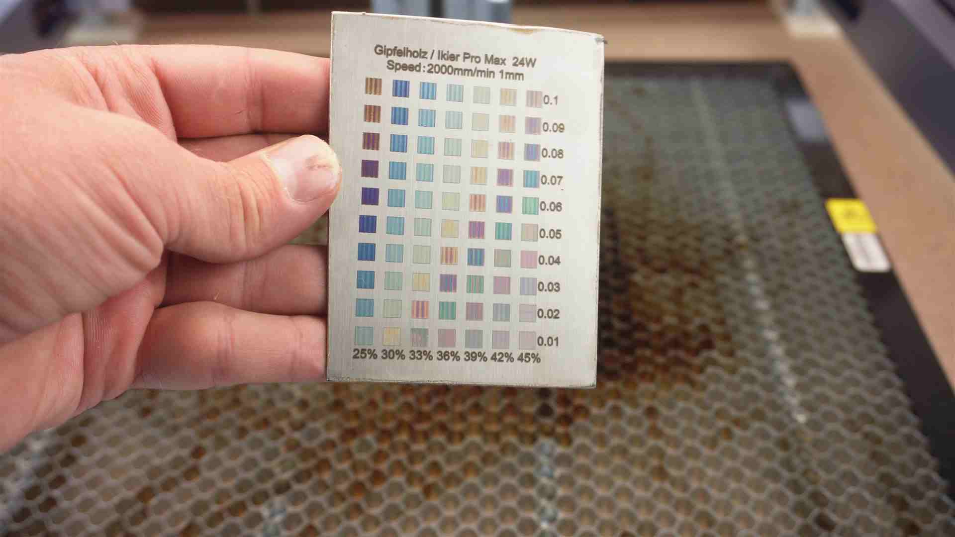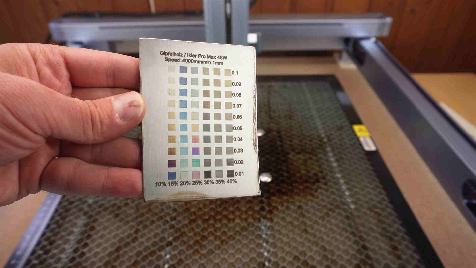 Man muss noch ein wenig an den Einstellungen spielen, damit es so schöne Farben wie beim Atomstack X20 gibt. Wie das geht erkläre ich im Video.