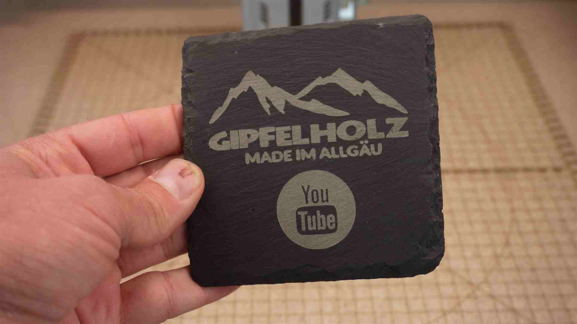 Schiefer ist wirklich sehr einfach zu gravieren. Vorher habe ich den Schiefer mit einer Schicht matten Lack beschichtet. Wunschmotiv lasern, danach noch mit einer Schicht mattem Lack überzogen.