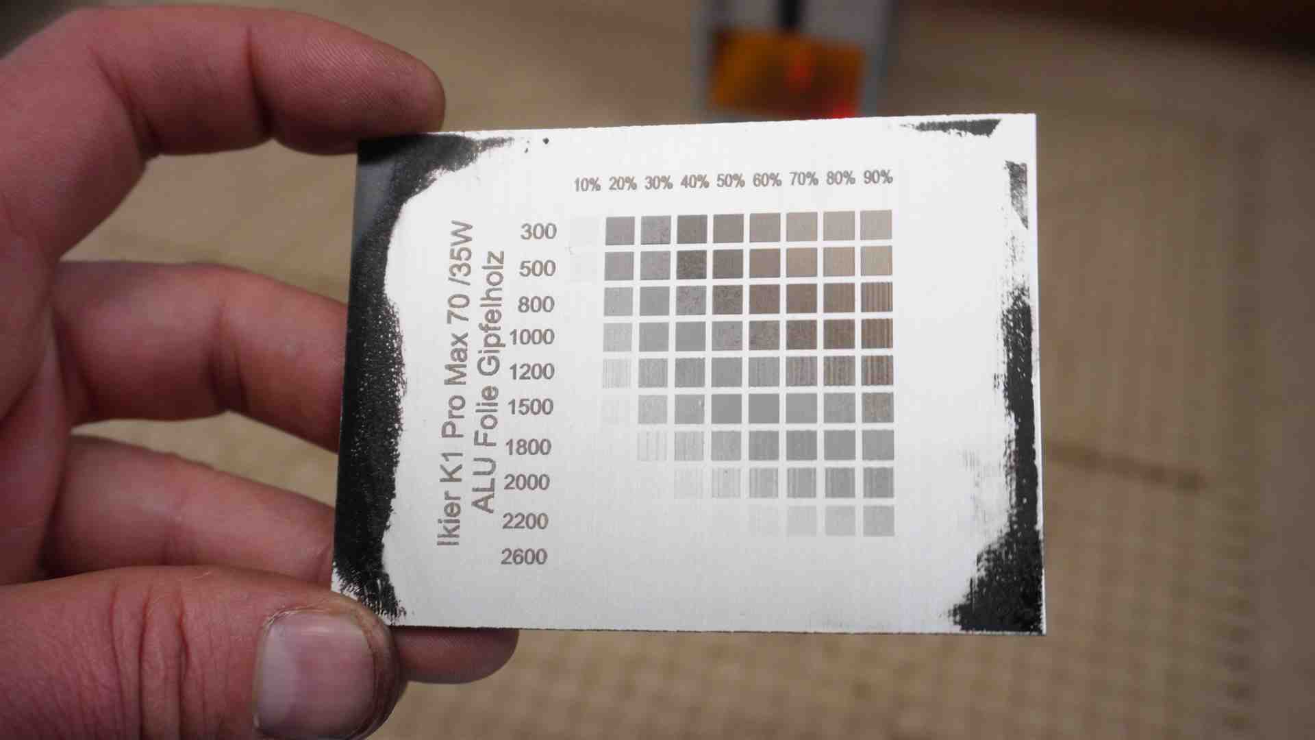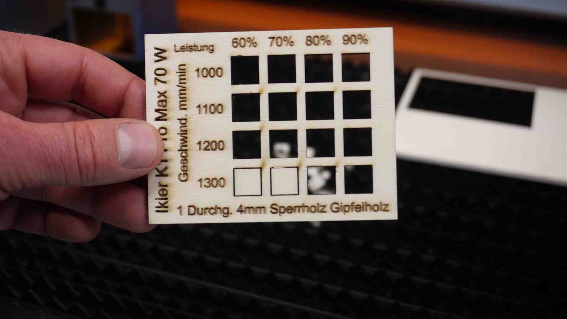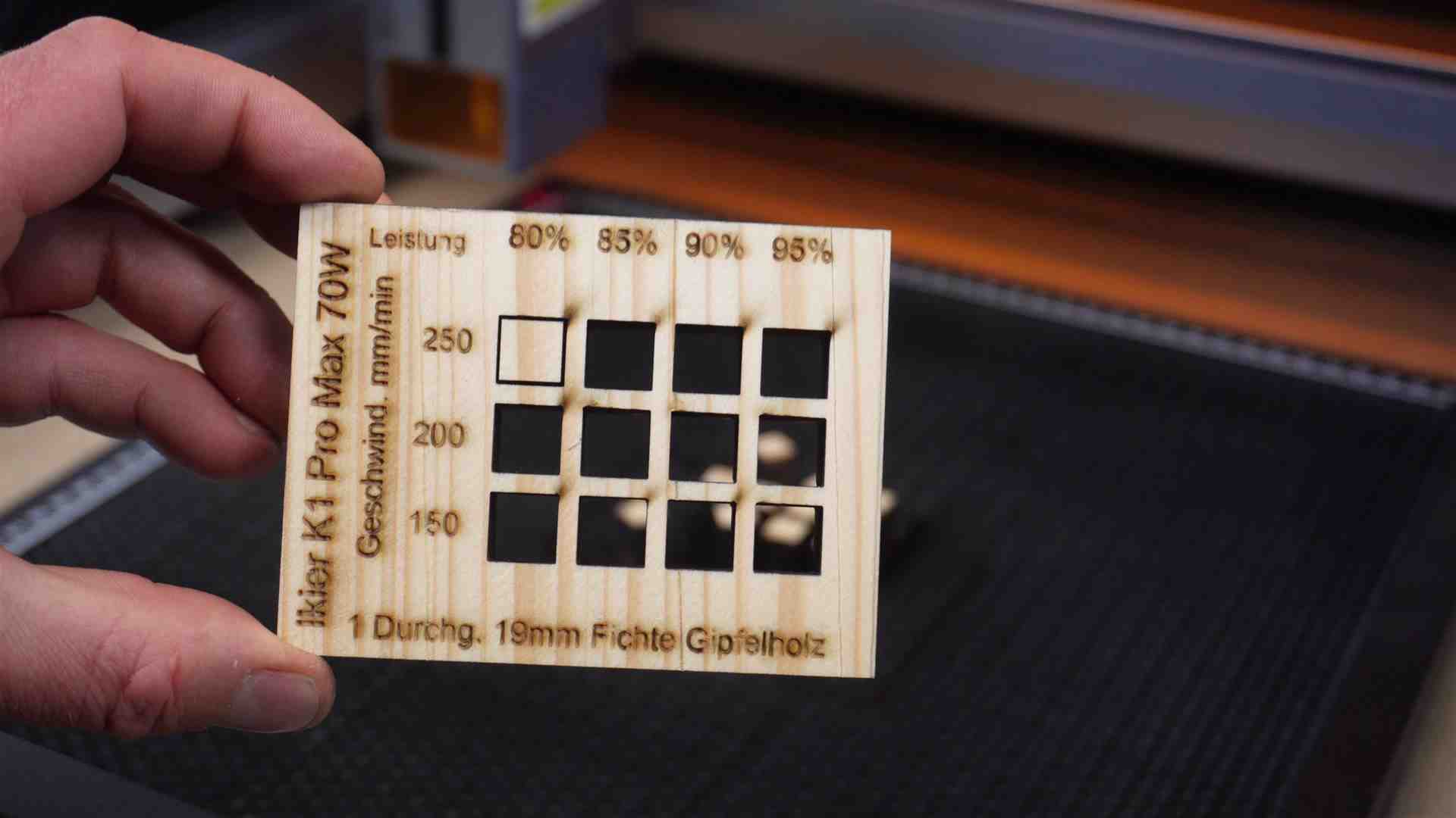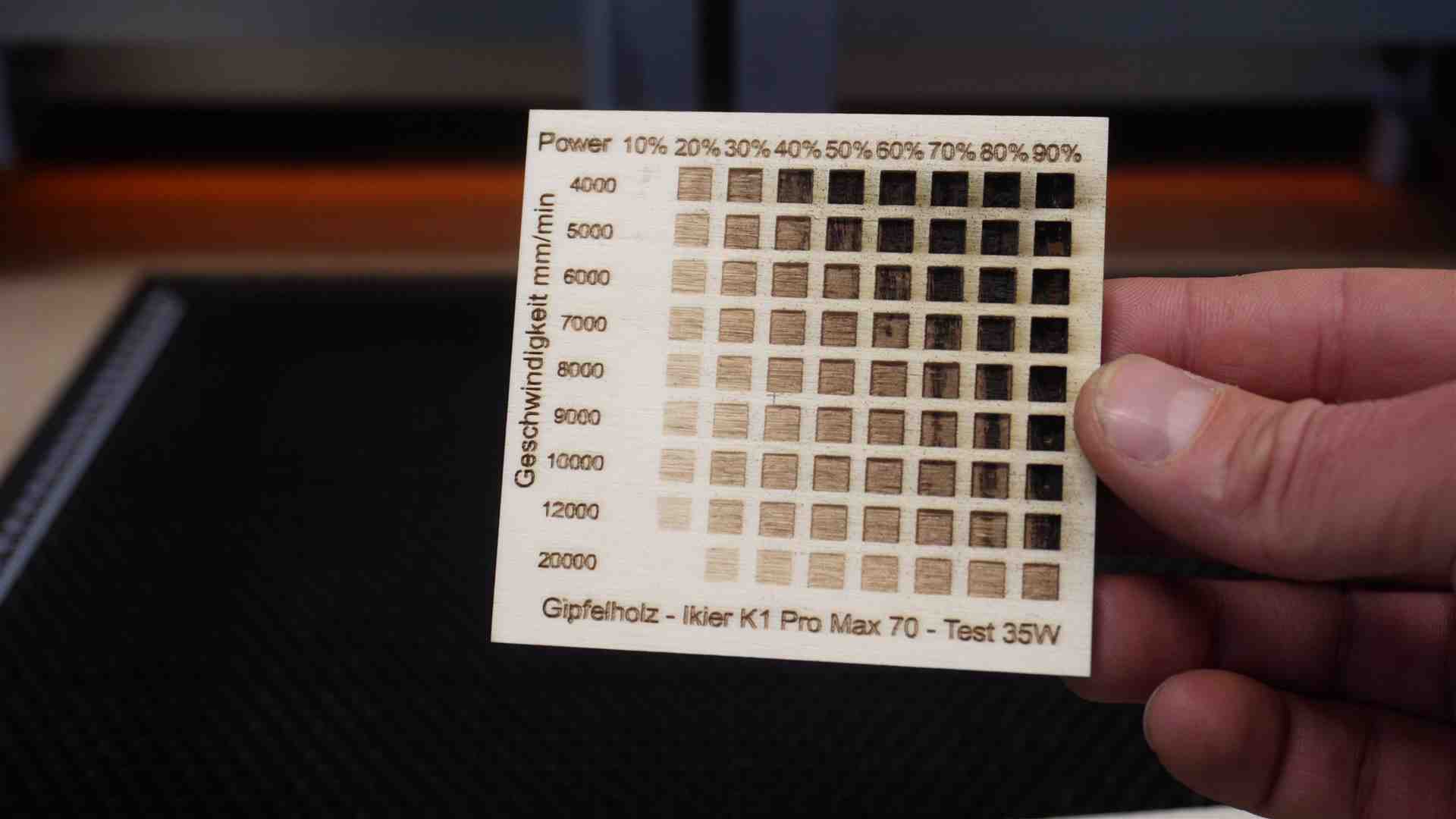 Lasern mit dem Ikier K1 Pro Max 70 Watt . Hier einige Beispiele mit Werten aus dem Video