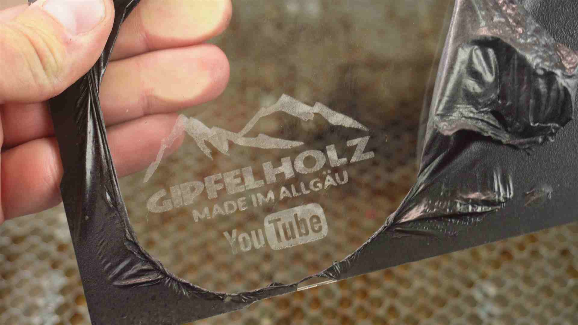 Nach dem Lasern könnt Ihr die Folie ganz leicht abziehen oder mit Verdünnung abputzen.