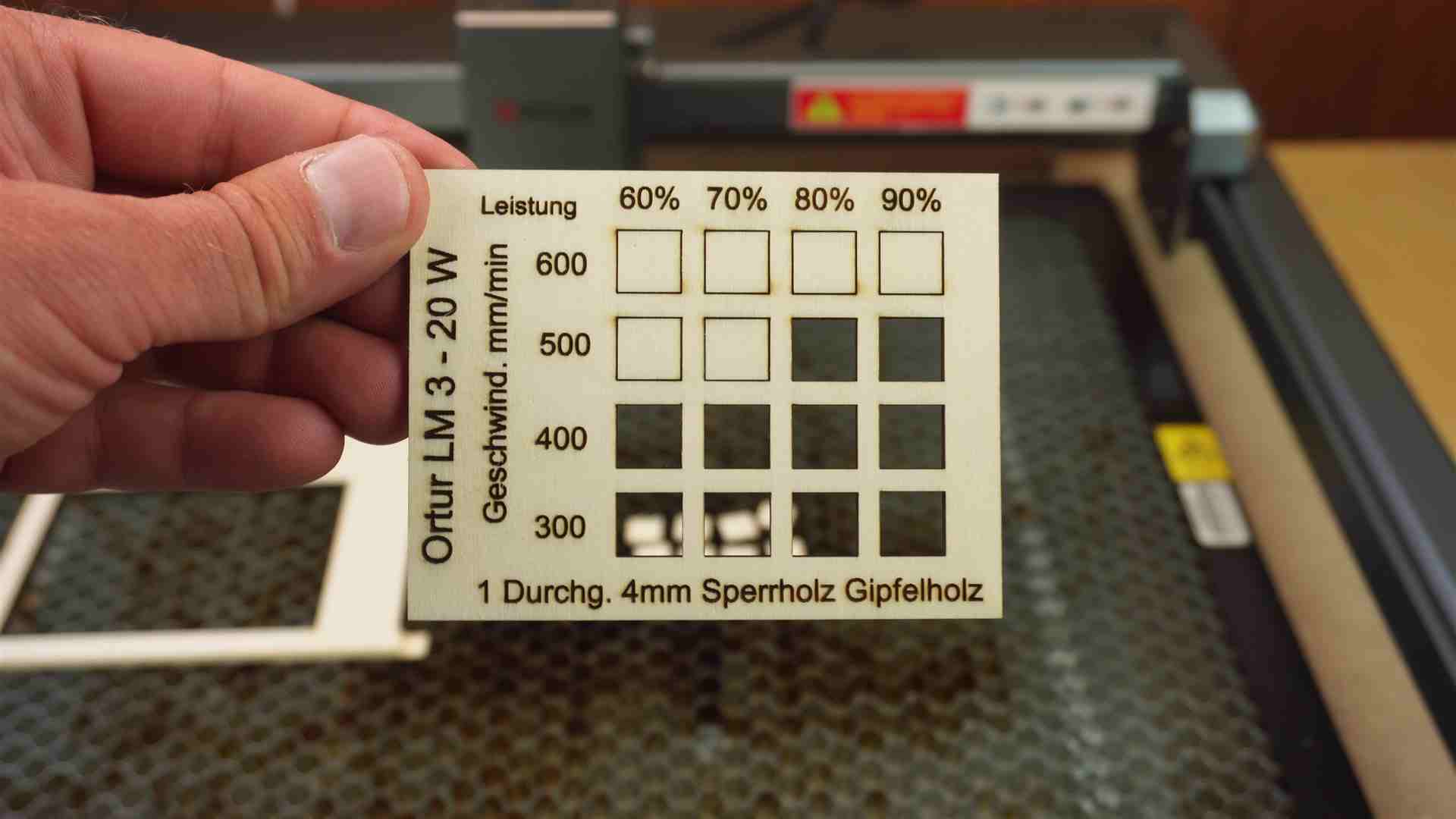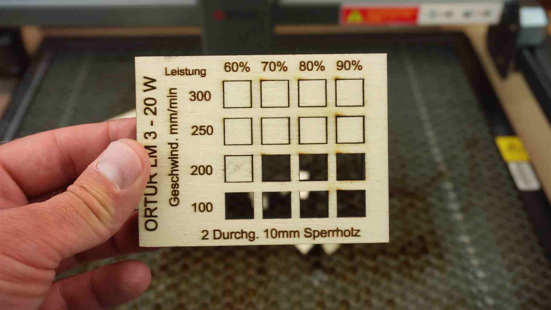 Wichtig ist, dass Ihr den Laser richtig fokussiert, lieber 1mm nächer am Werkstück