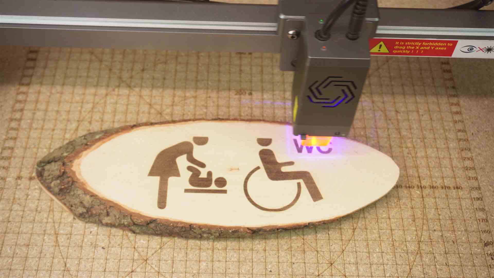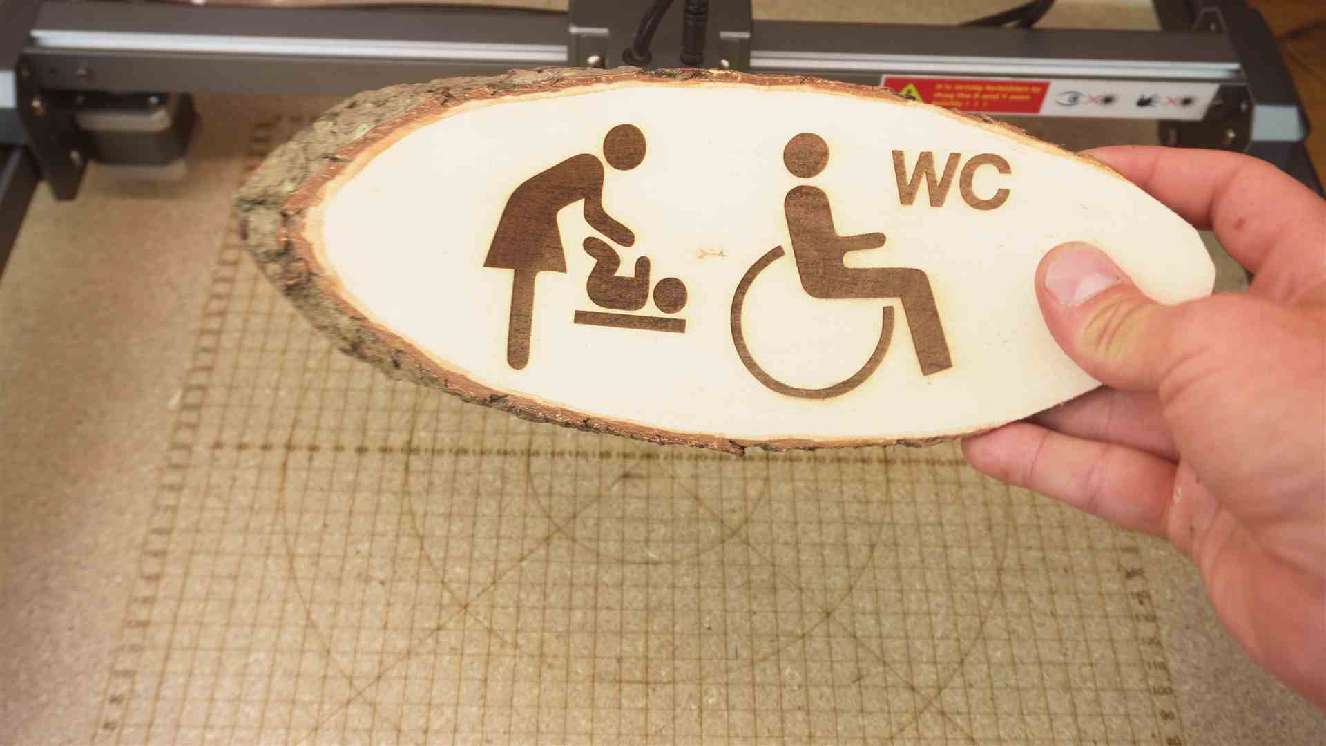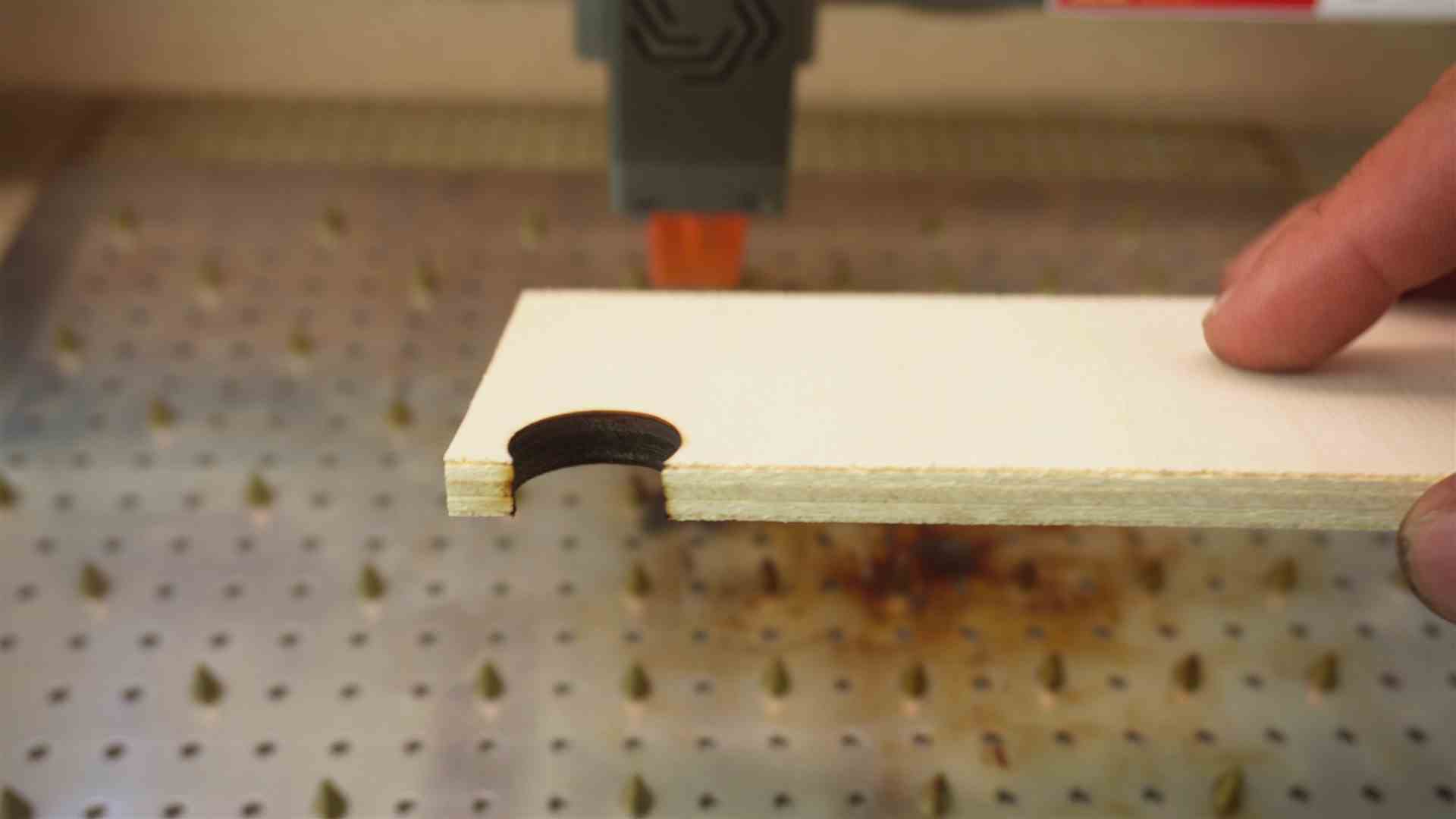 Aber Achtung beim Schneiden von Holz. Ihr müsst die Geschwindigkeit und Leistung richtig wählen.