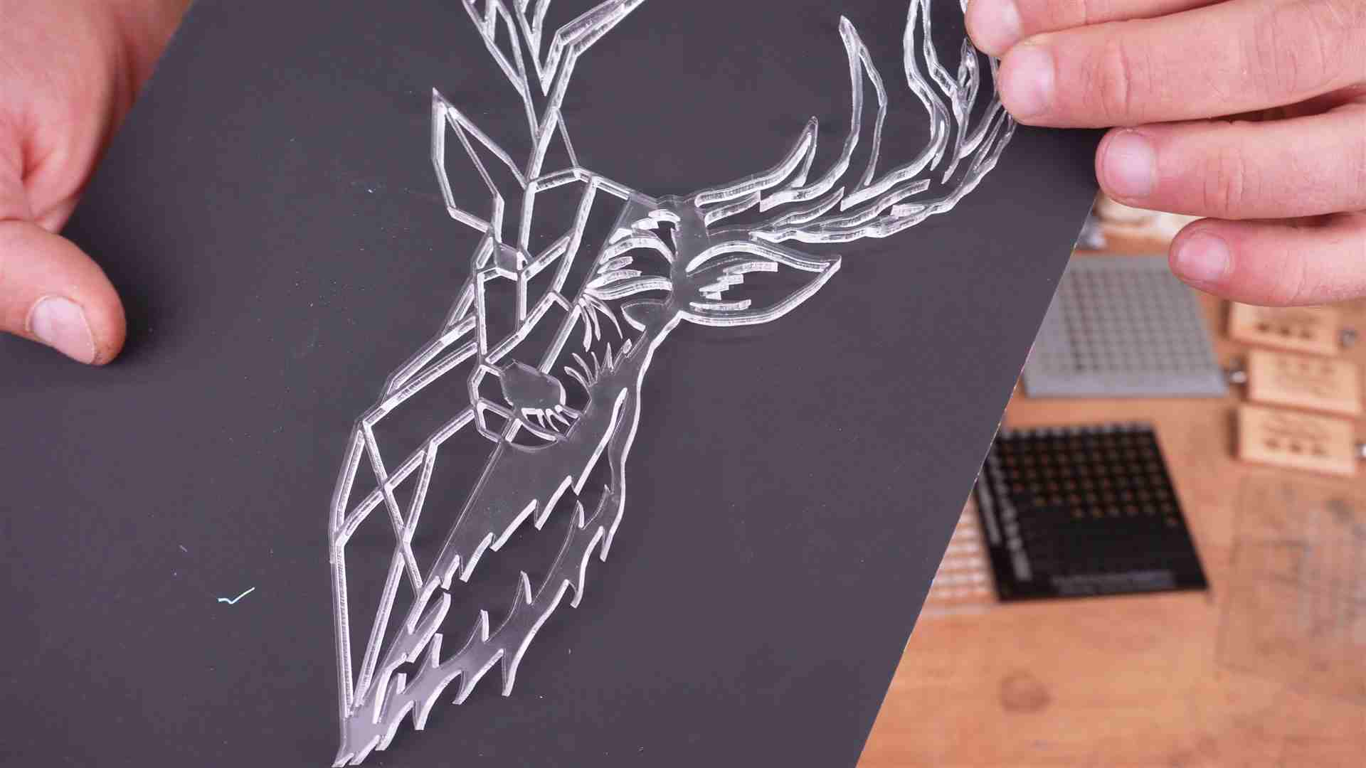 – Klars Acryl Hirsch Bild 5mm Acryl GS – 1 Durchgang – Speed 2-20 mm/sek (120-1200 mm/min)