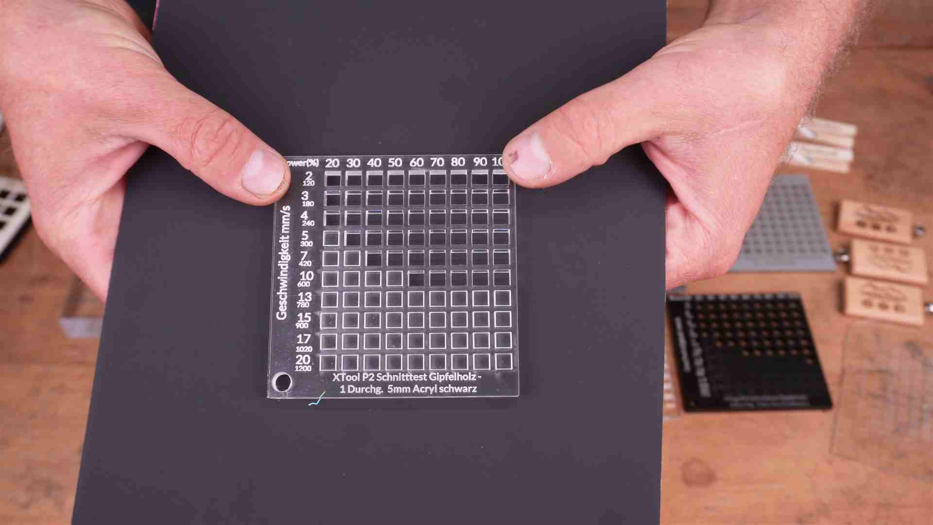 Lasern mit dem xTool P2 CO2 Laser. Hier einige Beispiele mit Werten aus dem Video