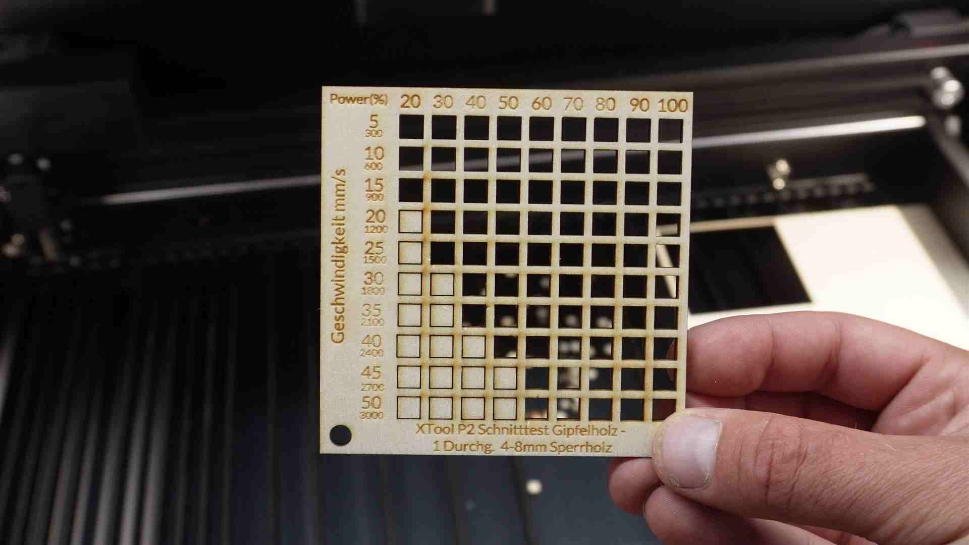 Schnitt- und Powertest CO2 Laser – xTool P2
