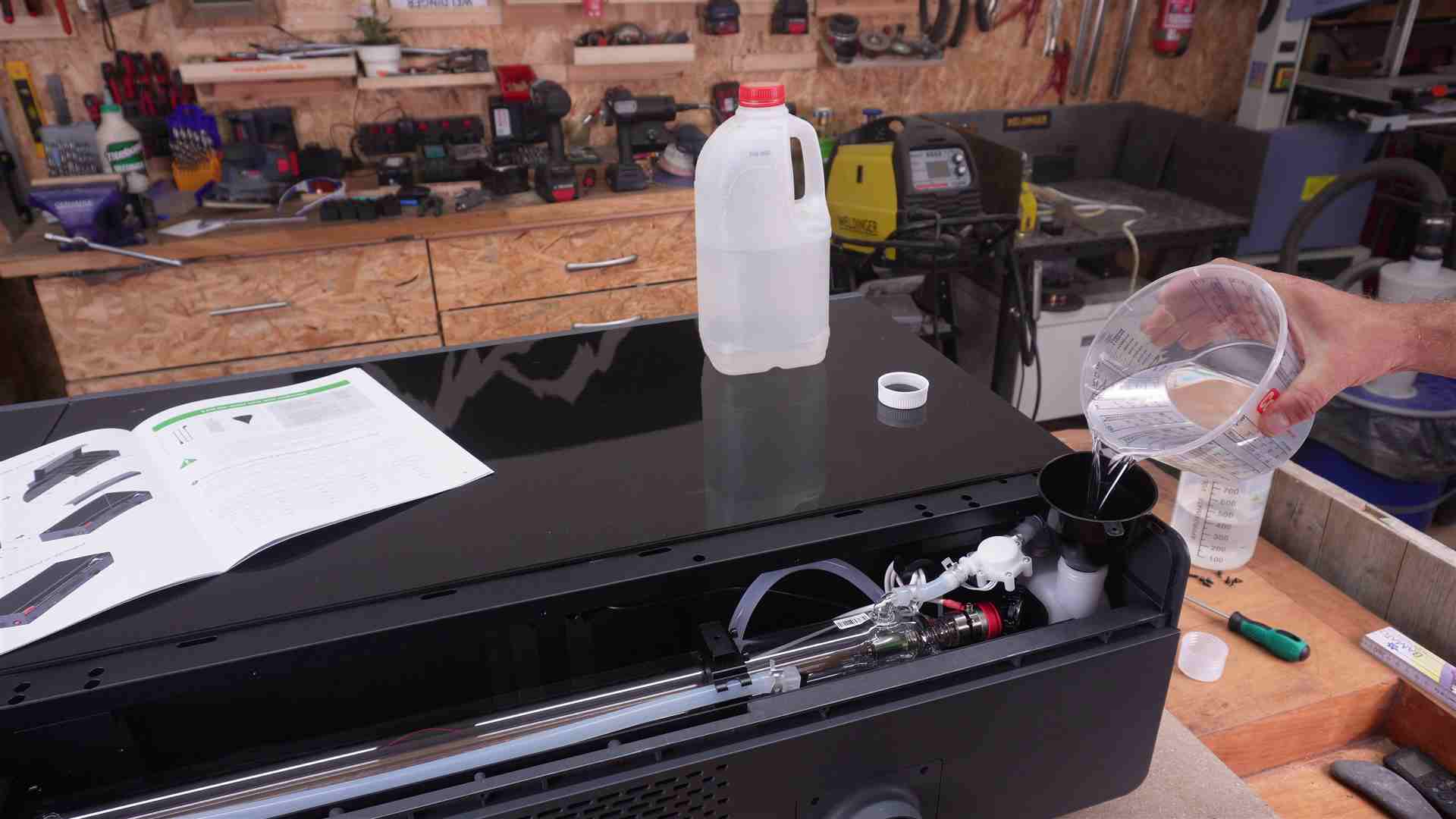 - Wasser im CO2 Laser auffüllen und ggf. je nach Standort noch Frostschutz beimischen.