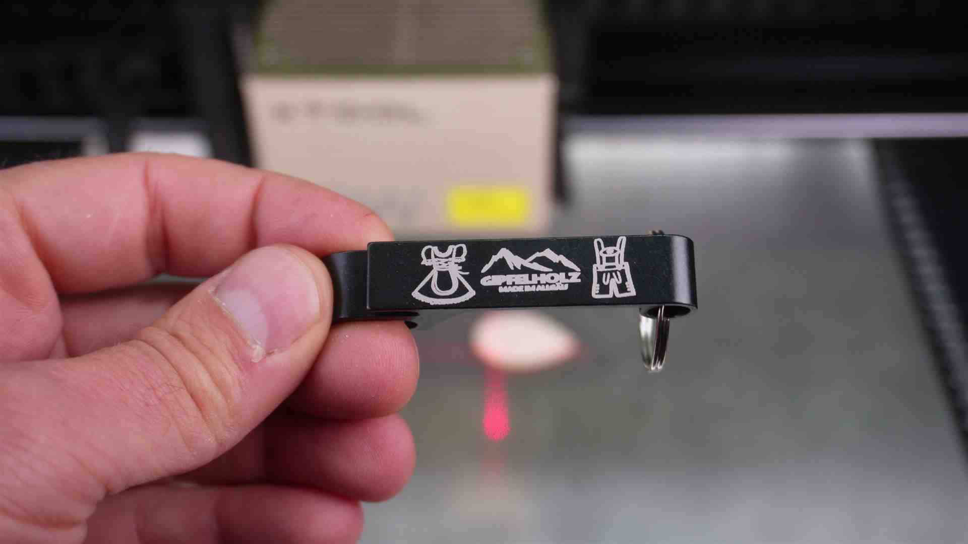 – Flaschenöffenr Alu kaufen* eloxiert – Speed 80 mm/sek – Leistung 50% – Linien/cm 220