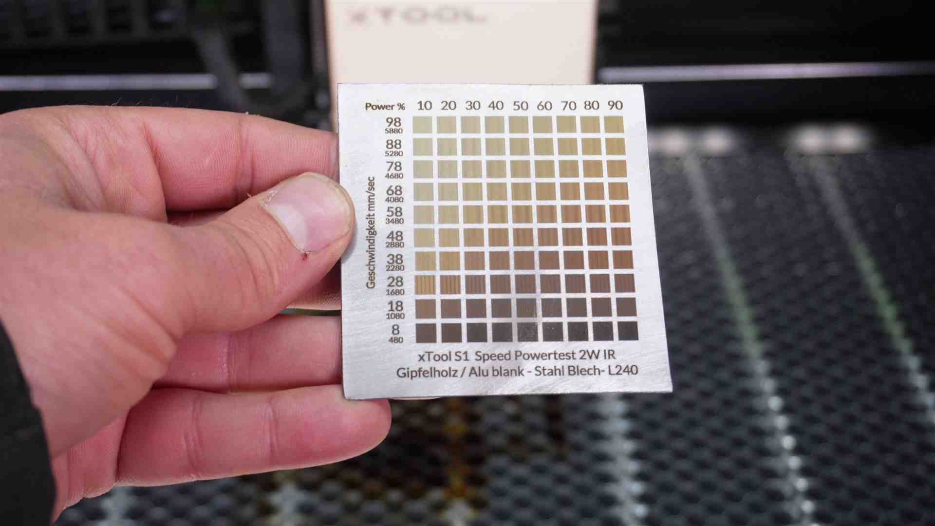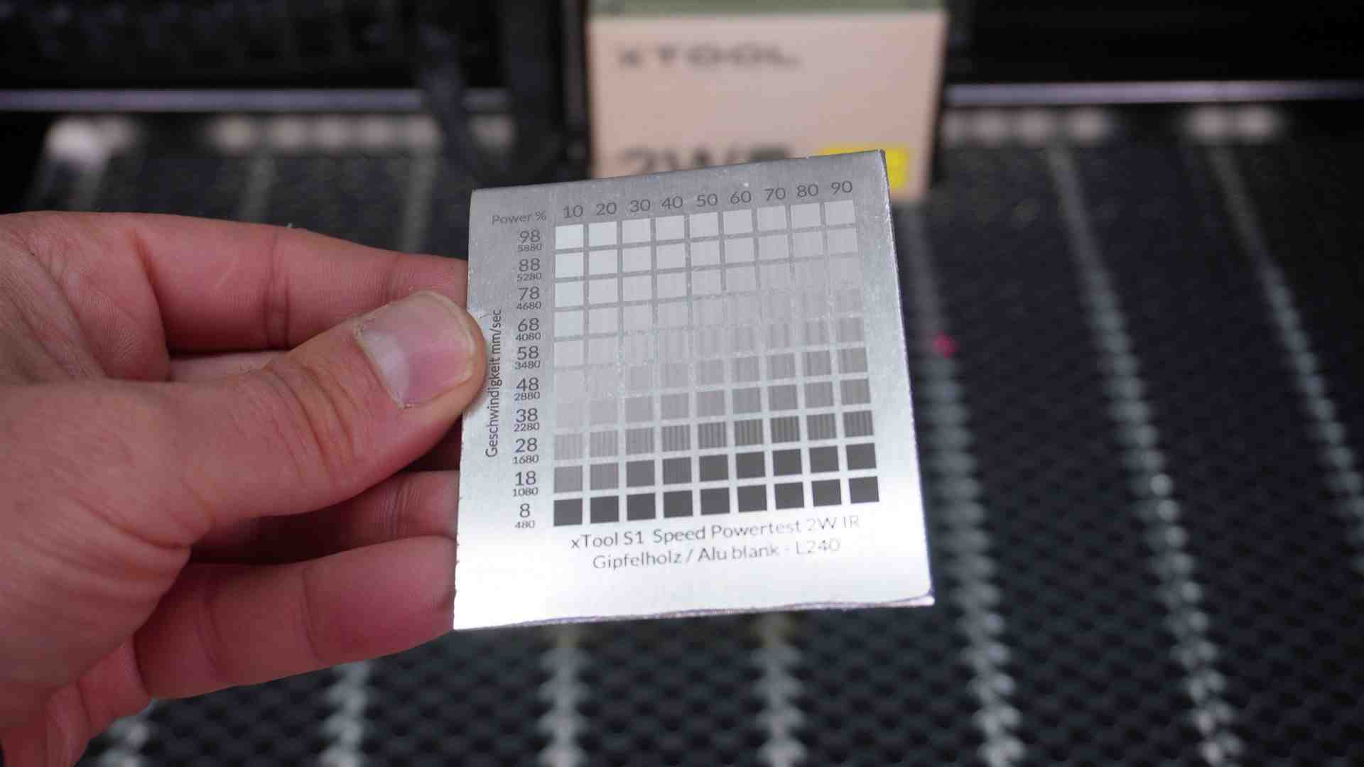 – Speed und Powertest Alu – Folie xTool S1 Laser
