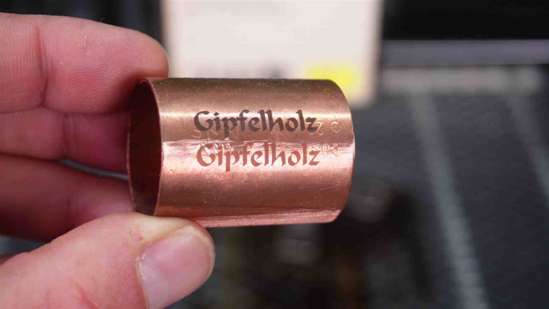 – Kupfer – Speed 78 mm/sek – Leistung 80% – Linien/cm 240