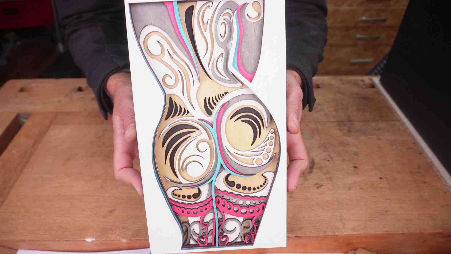 So ein Multilayer Bilder schaut einfach fantastisch aus. Es beseht aus mehreren Schichten Holz, die am Schluss eine Art 3D Bild entstehen lassen.
